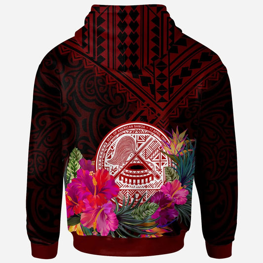 American Samoa Hoodie - American Samoa Coat Of Arms With Polynesian Tattoo Red
