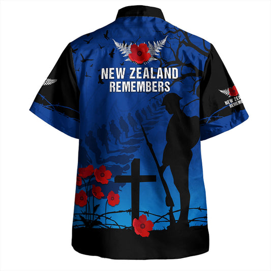 New Zealand Hawaiian Shirt Silver Fern Lest We Forget Remember