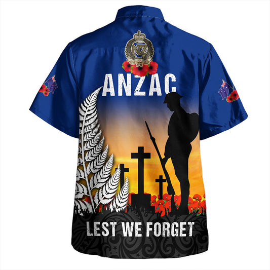 New Zealand Hawaiian Shirt Anzac Army And Maori Silver Fern Poppy Sunset Style