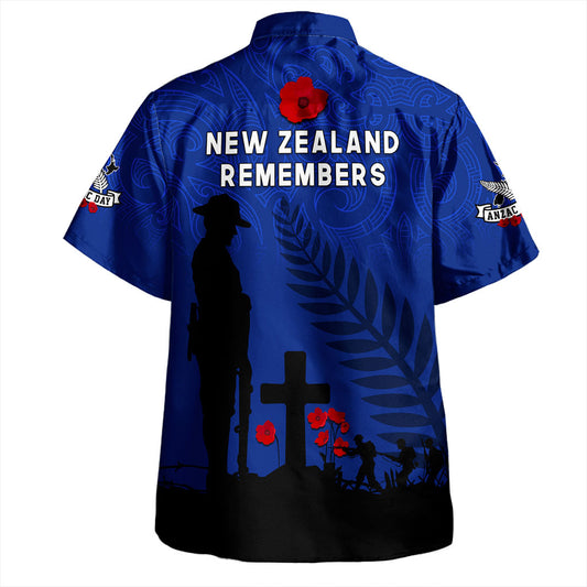 New Zealand Hawaiian Shirt Maori Silver Fern Poppy Flower Remembers