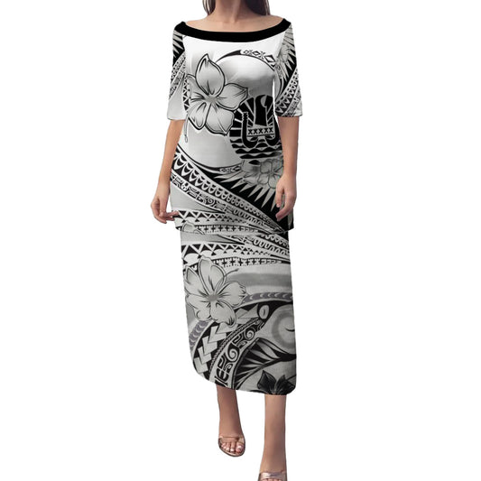 Marquesas Islands Combo Puletasi And Shirt Kakau Style Grey