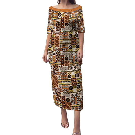 Tonga Combo Puletasi And Shirt Ngatu Tapa Pattern