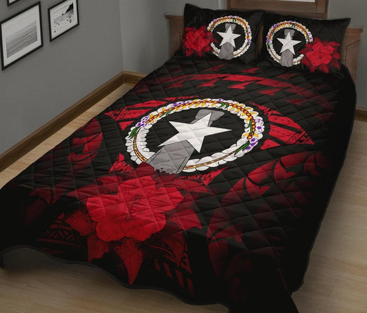 Northern Mariana Islands Polynesian Quilt Bed Set Hibiscus Red