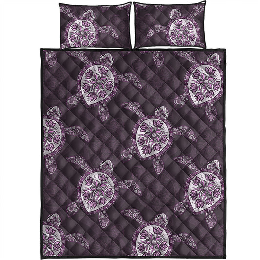 Hawaii Quilt Bed Set Turtle Plumeria Violet