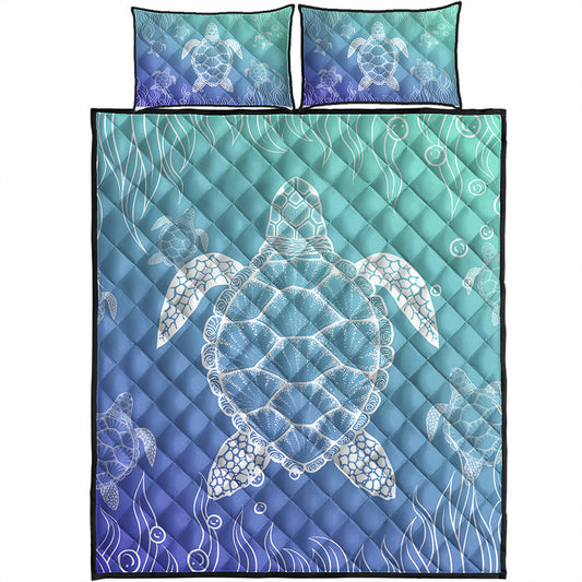 Hawaii Quilt Bed Set Turtle Gardiant Background