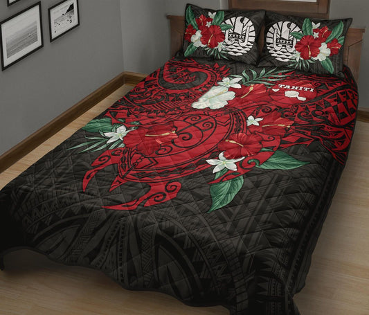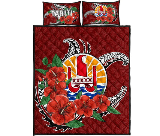 Tahiti Polynesian Quilt Bed Set - Tahiti Flag Red Tattoo