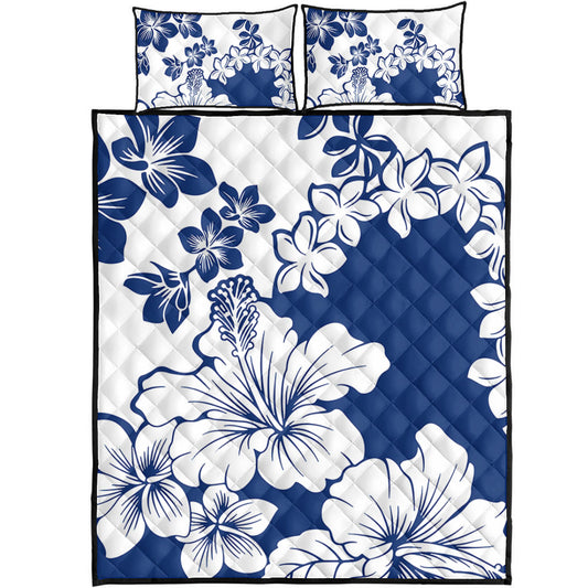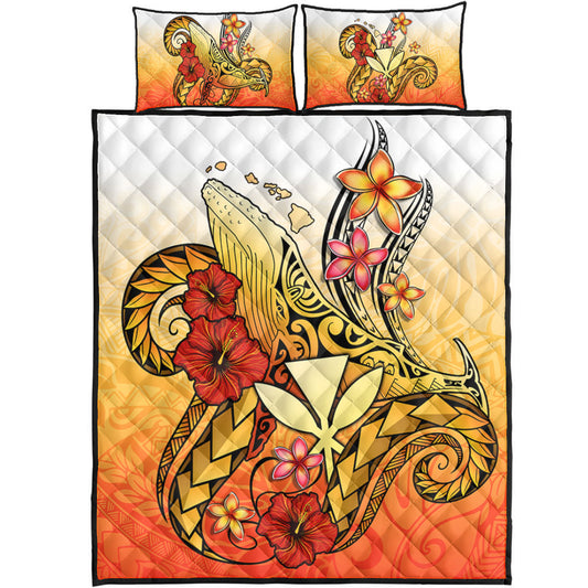 Hawaii Quilt Bed Set Humpback Whale with Hibiscus Plumeria