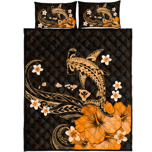 Hawaii Quilt Bed Set Kanaka Map And Shark Tribal Tattoo