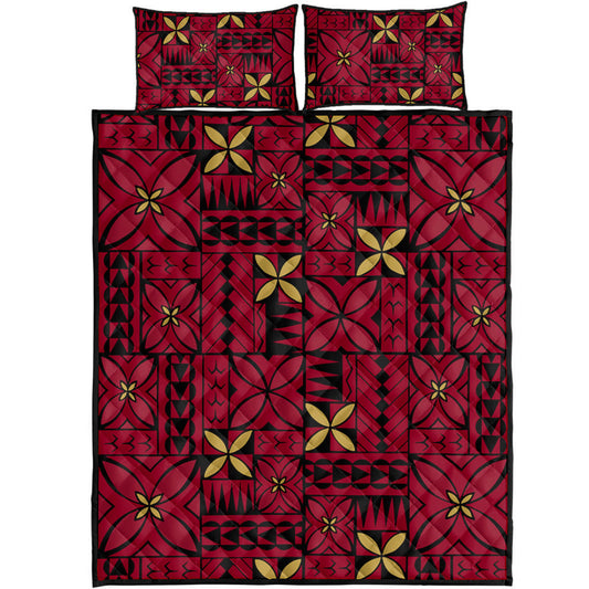 Samoa Quilt Bed Set Siapo Design Tribal Pattern Red