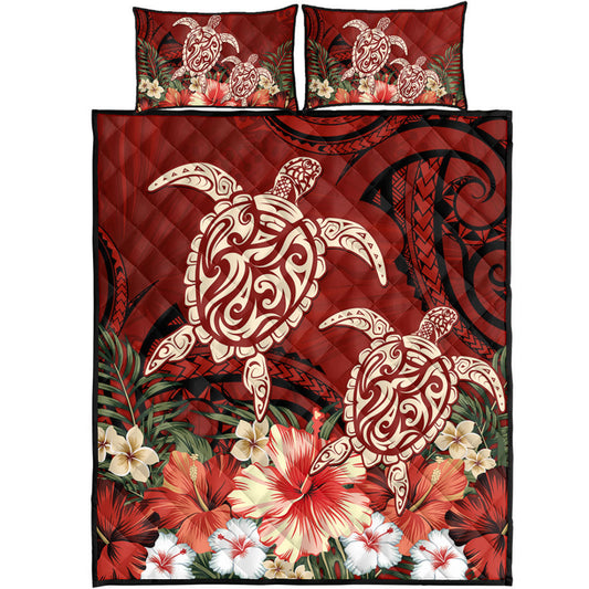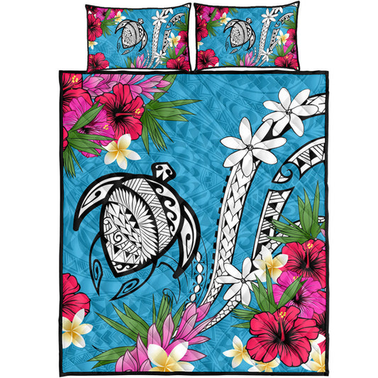 Hawaii Quilt Bed Set Polynesia Tribal Turtle Tropical Flower