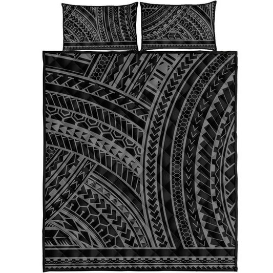 Hawaii Quilt Bed Set Polynesia Pattern Gray