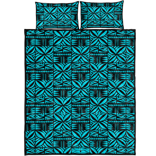 Samoa Quilt Bed Set Design Stretch Print Fabric Turquoise
