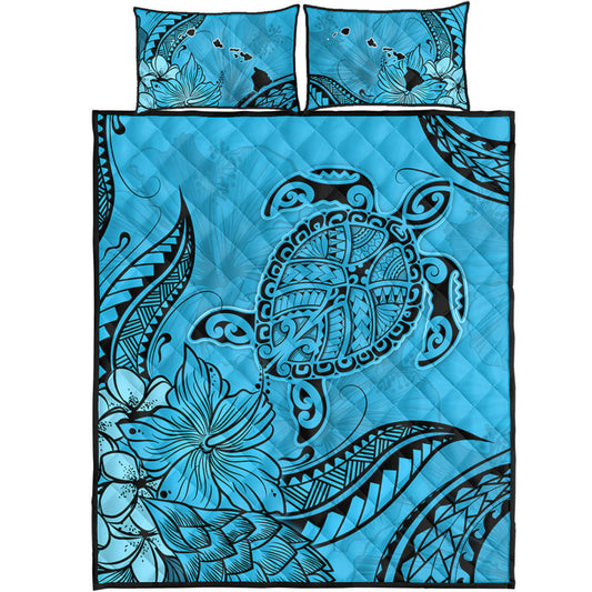 Hawaii Quilt Bed Set Tribal Turtle And Flowers Island Life