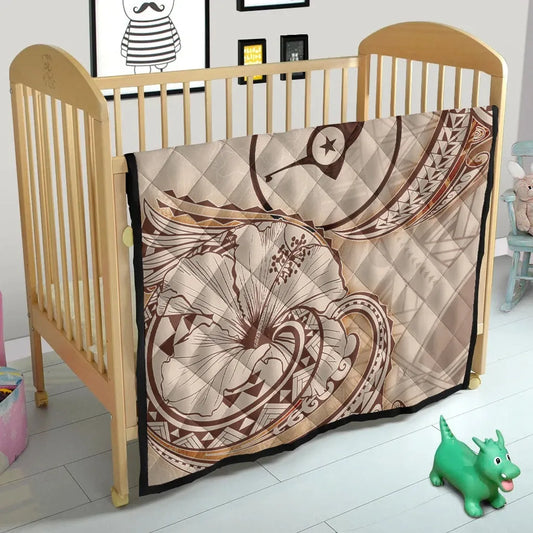 Yap State Premium Quilt - Hibiscus Flowers Vintage Style