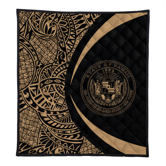 Hawaii Premium Quilt Hawaiian Map Kakau Style Gold
