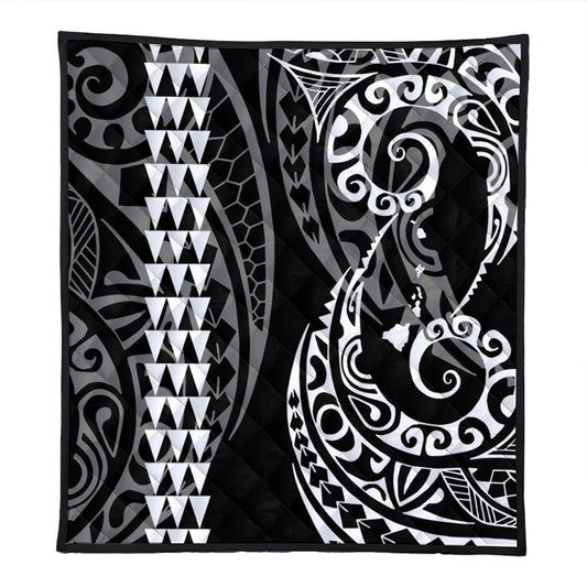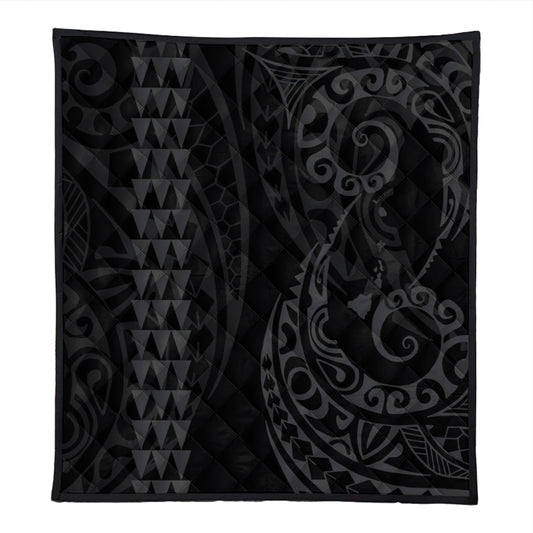Hawaii Premium Quilt Hawaiian Map Kakau Style Gray