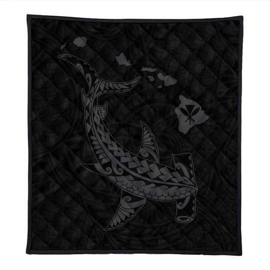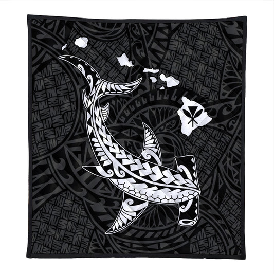Hawaii Premium Quilt Hawaiian Native Map Hammerhead Shark Gray