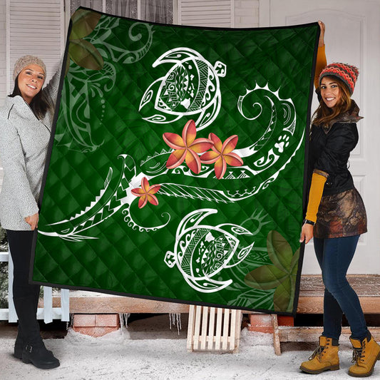 Hawaii Premium Quilt Polynesian Turtle Map Hawaii Plumeria