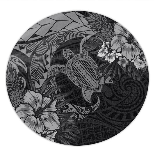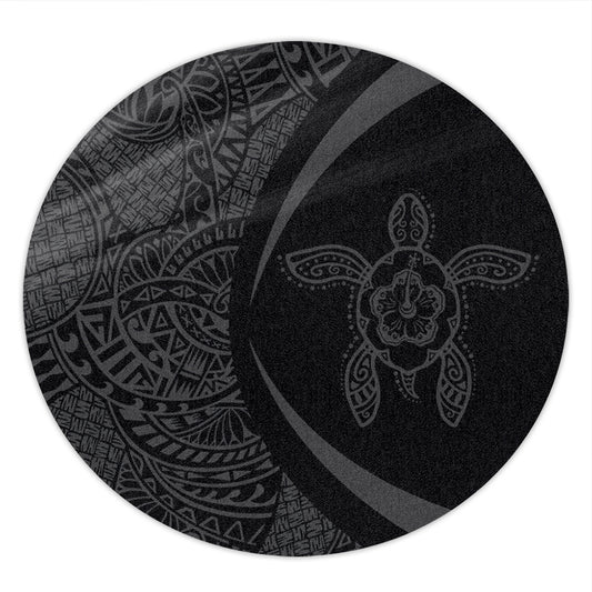 Hawaii Round Rug Turtle Hibiscus Lauhala Black Gray Circle