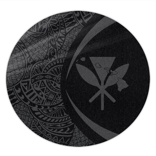 Hawaii Round Rug Kanaka Maoli Hawaiian Map Lauhala Gray Circle