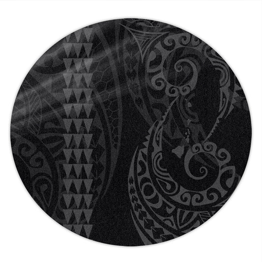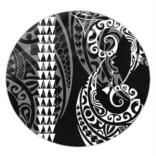 Hawaii Round Rug Hawaiian Map Kakau Style Gray