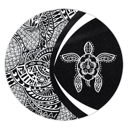 Hawaii Round Rug Turtle Hibiscus Lauhala Black White Circle