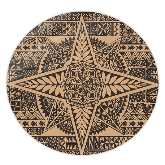 Samoa Round Rug Siapo Design Tribal Pattern Yellow
