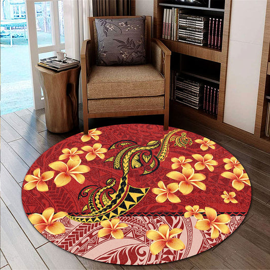 Hawaii Round Rug Tribal Tattoo Polynesia Plumeria Flower