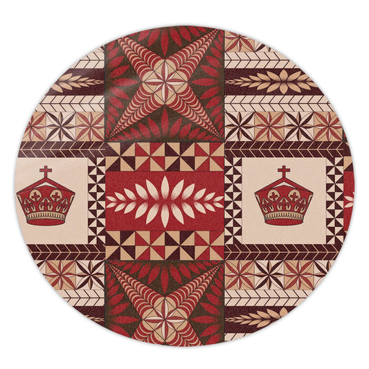Samoa Round Rug Siapo Design Tribal Pattern Red