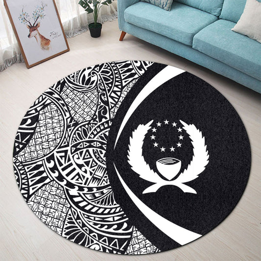 Pohnpei State Round Rug Lauhala White Circle Style