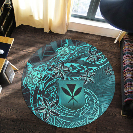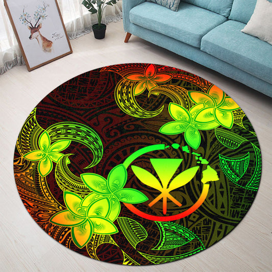 Hawaii Round Rug Kanaka And Turtle Map Plumeria Polynesia