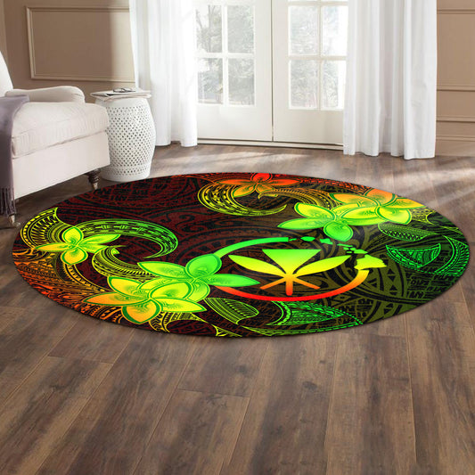 Hawaii Round Rug Kanaka Maoli Plumeria Flowers Vintage Style Reggae Colors