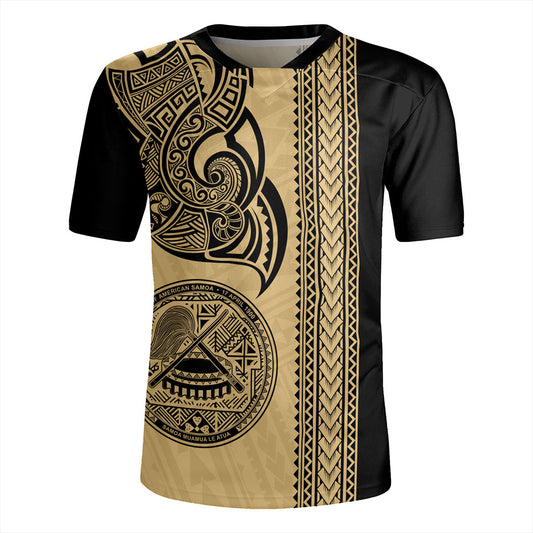 American Samoa Rugby Jersey Polynesia Tribal Tattoo Gold