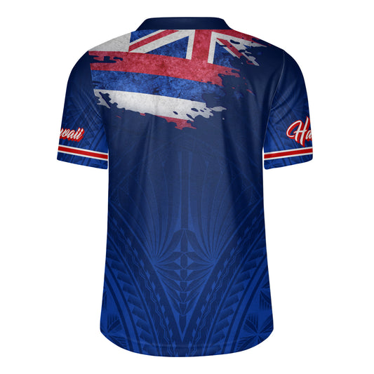 Hawaii Rugby Jersey Hawaii Flag Blue Color Polynesian Patterns Grunge Style