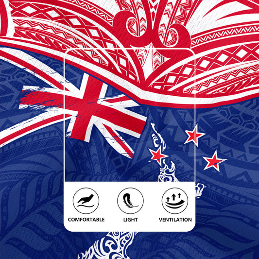 New Zealand Rugby Jersey Flag With Map And Maori Pattern