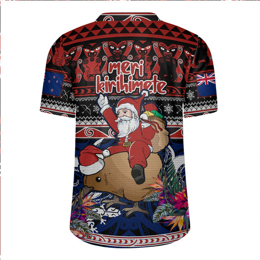 New Zealand Rugby Jersey Santa Riding Kiwi Bird Meri Kirihimete Ugly Christmas Maori Patterns