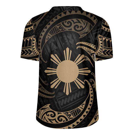 Philippines Filipinos Rugby Jersey Filipinos Sun Tribal Tattoo Gold Color Style