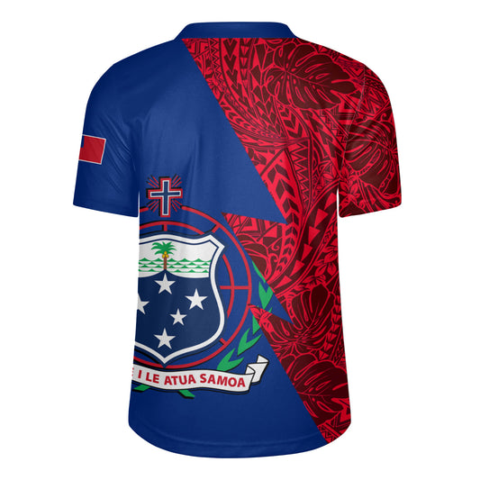 Samoa Flag With Seal Teuilia Flowers Tradition Patterns Men's All Over Printing Rugby Jersey