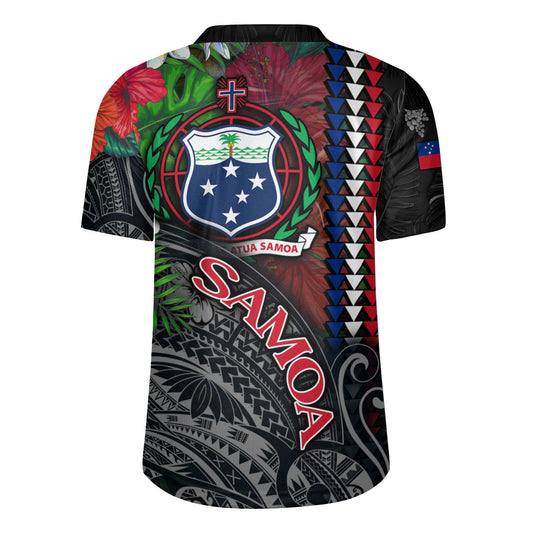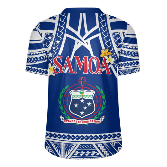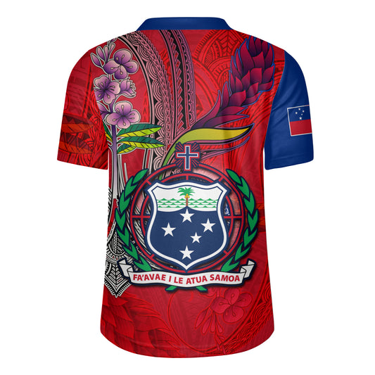 Samoa Rugby Jersey Custom Samoa Coat Of Arms With Tropical Flowers Special
