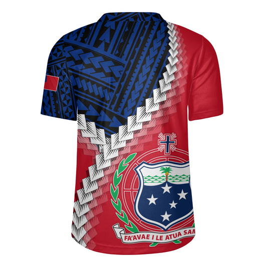 Samoa Rugby Jersey Polynesia Tribal Pattern Coat Of Arms