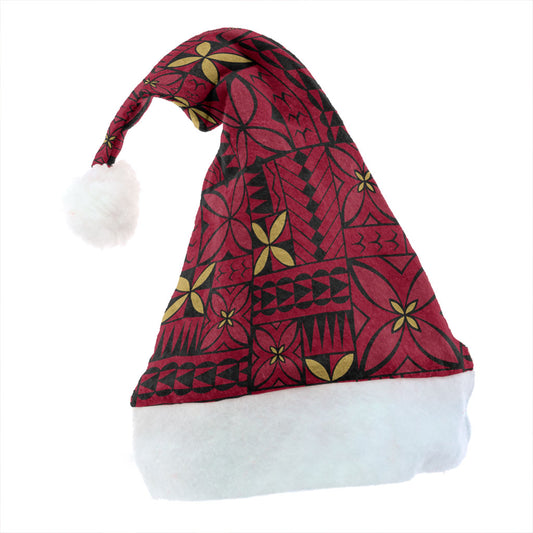 Samoa Christmas Hat Design Stretch Print Fabric Red