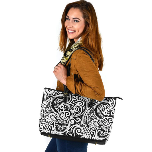 Polynesian Ethnic Pattern Leather Tote Bag