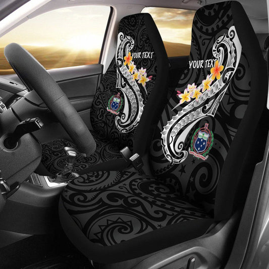 Samoa Custom Personalised Car Seat Covers- Samoa Seal Polynesian Patterns Plumeria (Black)