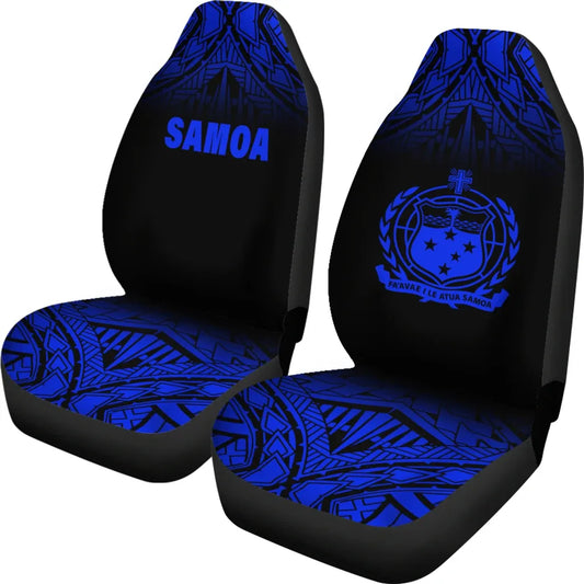 Samoa Custom Personalised Car Seat Covers - Samoa Flag Coat Of Arms Polynesian Tattoo Fog Blue