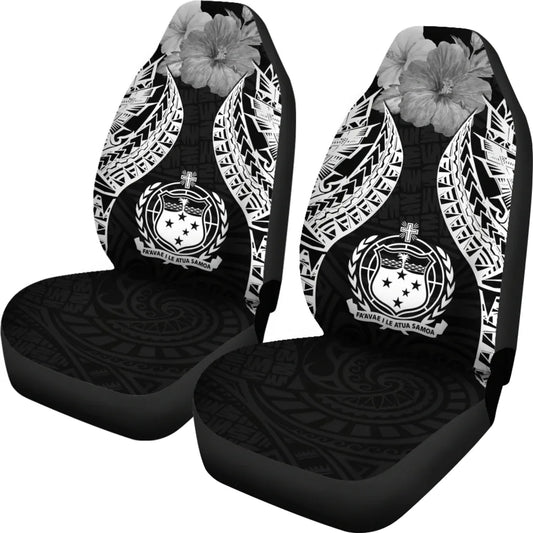 Samoa Car Seat Cover - Samoa Coat Of Arms, Polynesian Tattoo White And Black