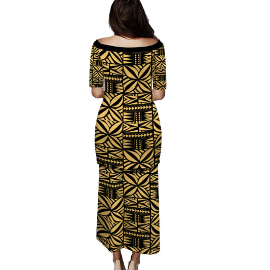 Samoa Puletasi Siapo Design Tribal Pattern Yellow