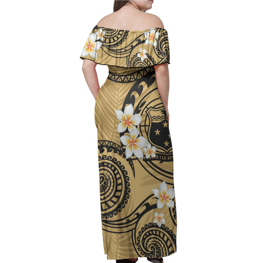 Samoa Off Shoulder Long Dress Plumeria Flowers Tribal Motif Yellow Version