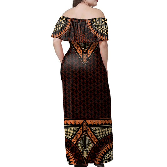 Samoa Women Off Shoulder Long Dress Siapo Pattern Design