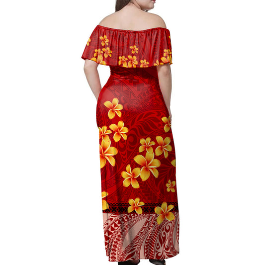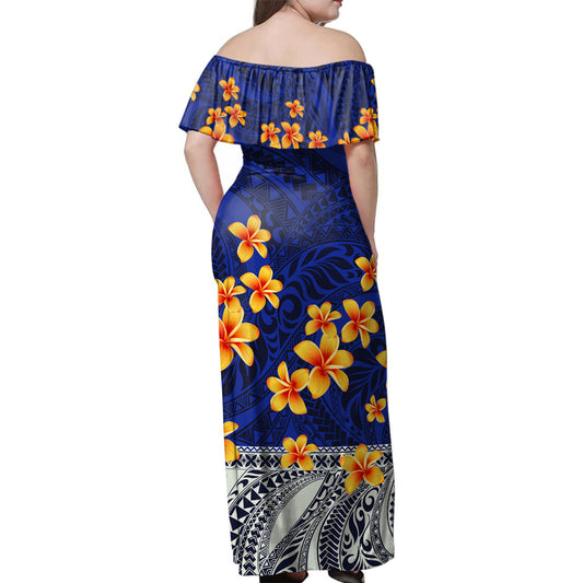 Samoa Woman Off Shoulder Long Dress Tribal Plumeria
