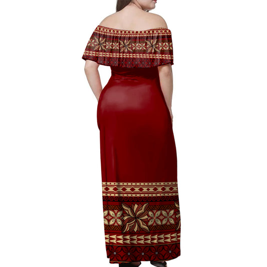 Samoa Woman Off Shoulder Long Dress Tribal Hibiscus Fabric